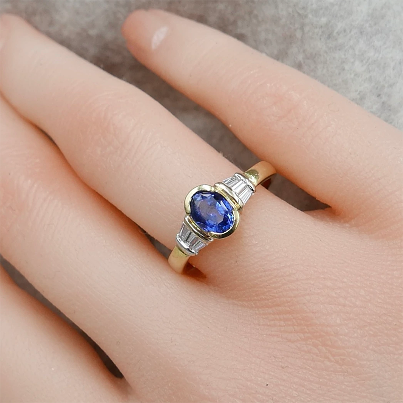 Intemporelle, cette jolie bague est sertie d’un saphir ovale épaulé de diamants taille baguette. Ce bleu royal ou méditerranéen, selon les envies, égaie le quotidien.